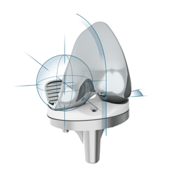 The design is based on the principle that by providing natural functional and anatomical asymmetry in all three compartments, better function and increased patient satisfaction can be achieved without the compromises of traditional total knee replacement designs. The result is complete inherent stability throughout the range of motion, coupled with allowance for physiological rotation during flexion. The design also features a physiologically asymmetric patellofemoral joint for a more natural feel and ease of flexion.